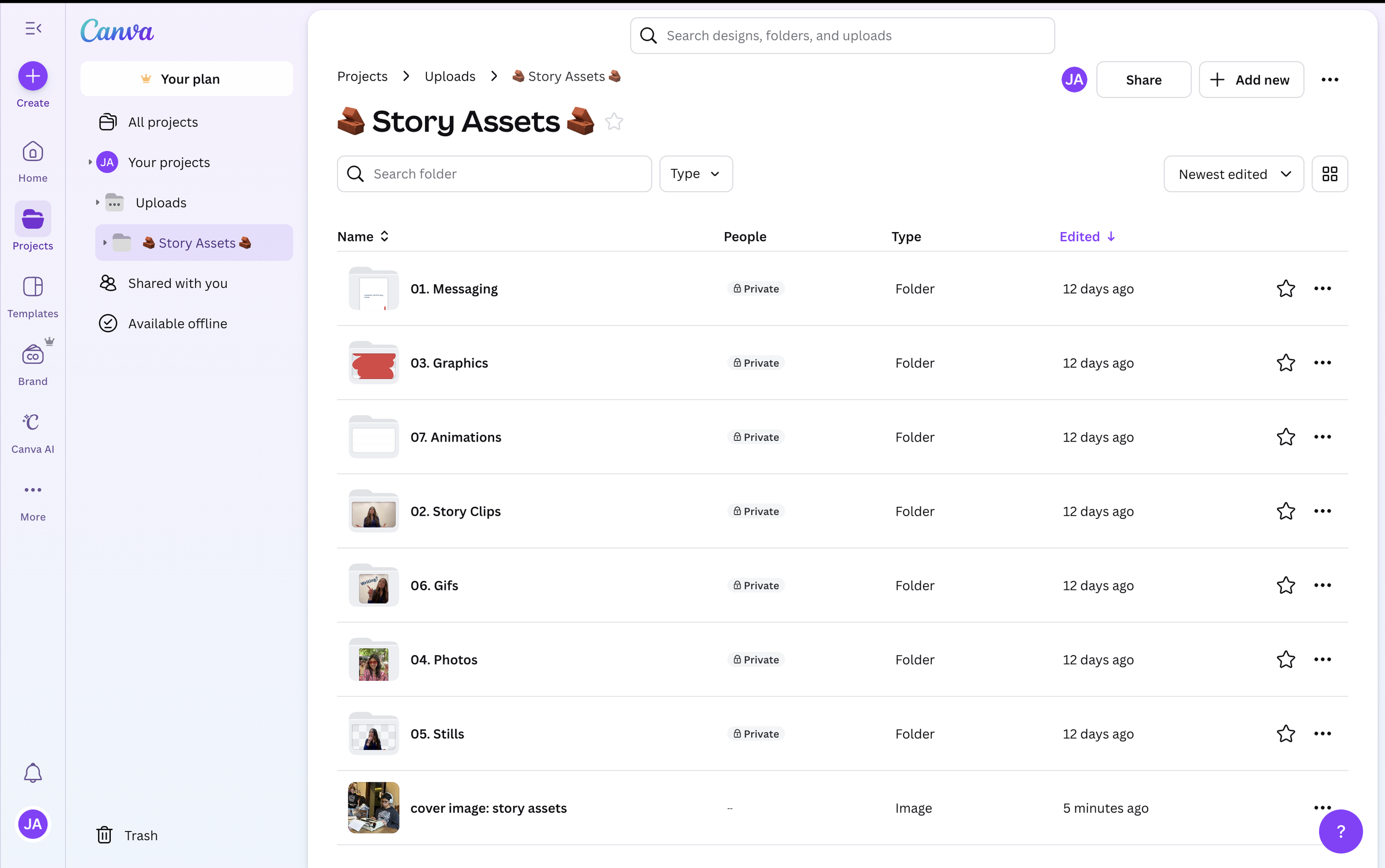Organize story clips, key messages, brand elements, photo library, and other storytelling assets in your Cavan uploads folder. Canva becomes a communications workshop full of easy-to-find, reusable components for your content creation needs.