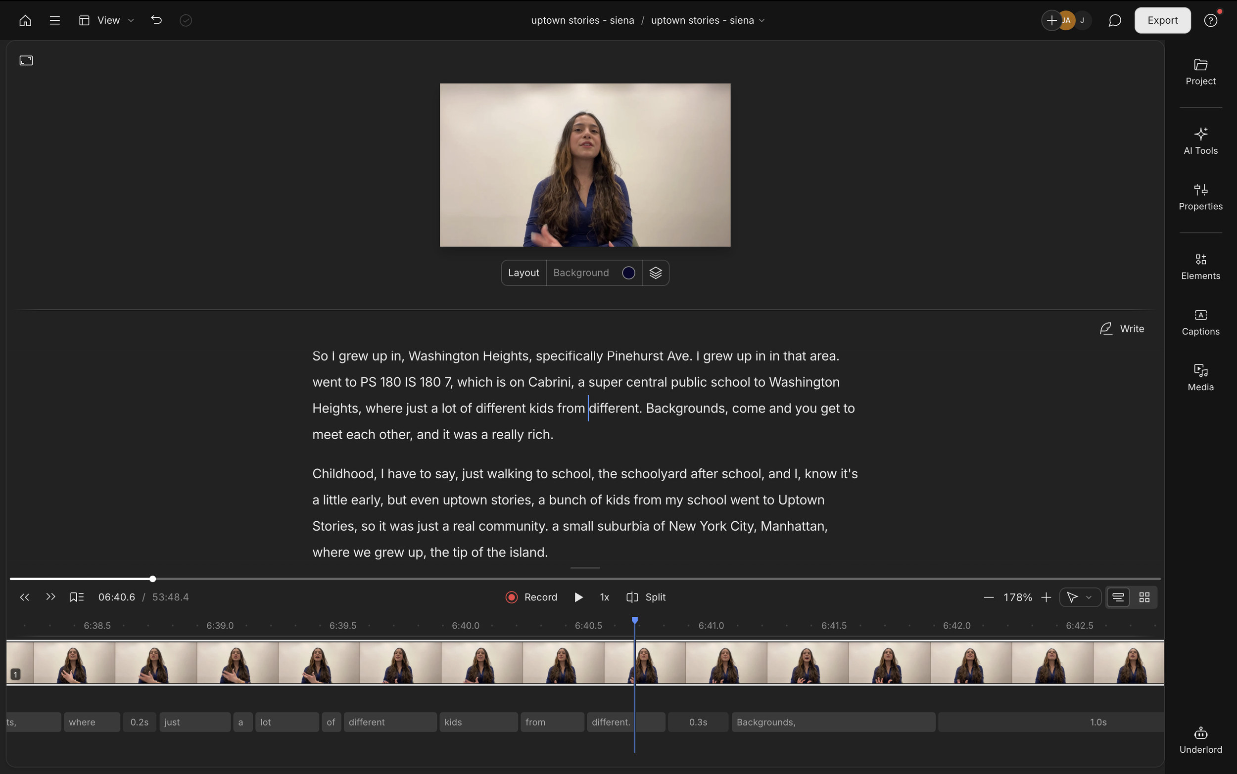We'll use Descript to create video clips from raw interview footage without the learning curve of traditional video editors. Descript lets you read through a transcript of your footage, leave annotations and comments, and create clips of your most powerful moments—as easy as editing a Google doc.